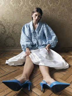 Блузка жаккардовая с баской и воротником