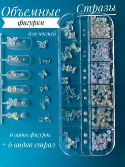 Объемные Фигурки для ногтей Вишневые Бабочки Розы и стразы