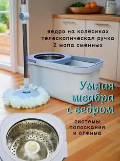Ведро для мытья полов с шваброй с отжимом для уборки