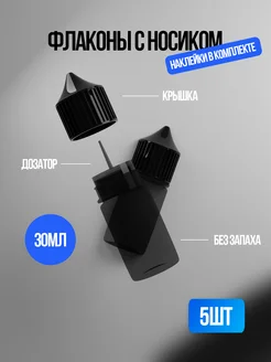 ПЭТ Флакон с дозатором 30мл черный с наклейками 5шт