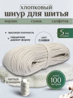 Шнур хлопковый 5мм для вязания макраме рукоделия творчества