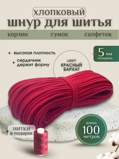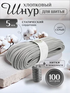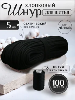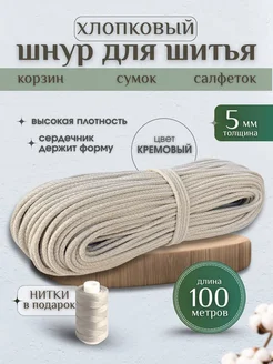 Шнур хлопковый с сердечником 5 мм для шитья и рукоделия