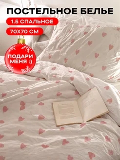 Постельное белье 1.5 спальное 70х70 Розовые сердечки