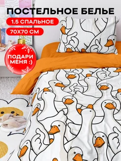 Постельное белье 1.5 спальное 70х70 поплин Гусь обнимусь