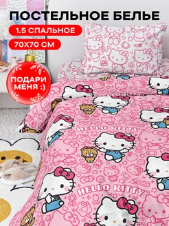 Постельное белье 1.5 спальное 50х70 поплин Hello kitty