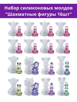 Молд для эпоксидной смолы, форма силиконовая Шахматы 16 шт