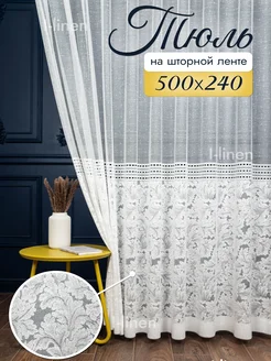 Тюль в спальню гостиную лен 250х300 белый длинный