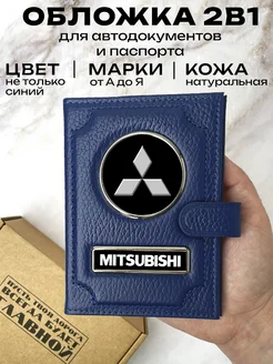 Обложка с паспортом кожаная MITSUBISHI Митсубиси
