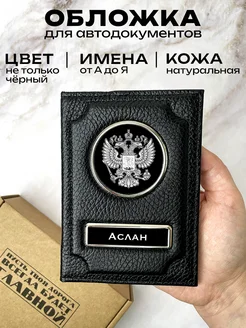 Авто обложка кожаная с именем Дмитрий и гербом России