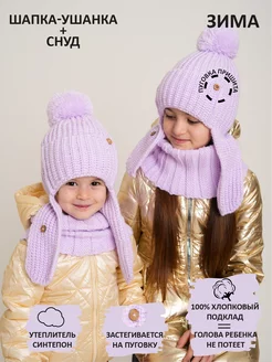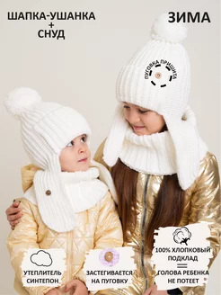 Шапка со снудом зимняя для девочки малыша детская вязаная
