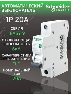 Автоматический выключатель Schneider Easy 9 1Р 20А 6kA