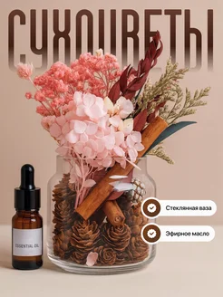 Сухоцветы для декора и интерьера натуральные сухие, с вазой