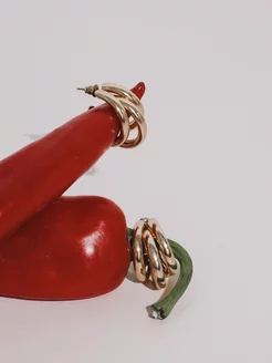 Серьги гвоздики кольца конго блестящие золото