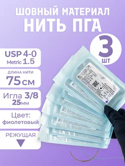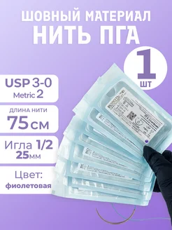Материал шовный с иглой ПГА полигликолидная рассасывающаяся