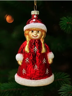 Елочное украшение Снегурочка красная 8,5 см Стекло