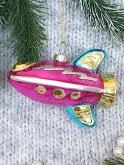 Ракета фиолетовая 7 см стеклo елочная игрушка
