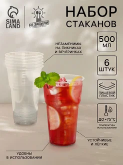 Набор одноразовых пластиковых стаканов 6 штук, 500 мл