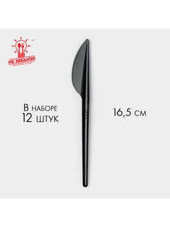 Нож пластиковый одноразовый Стандарт 16.5 см чёрный 12 шт