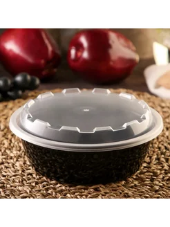 Контейнер пластиковый одноразовый с крышкой 530 мл круглый