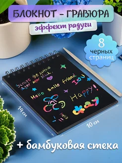 Блокнот-гравюра + стека, 10х14х0,7см, 8 черных страниц