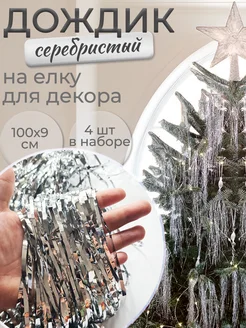 Дождик на елку серебряный новогодний 100х9см 4 шт