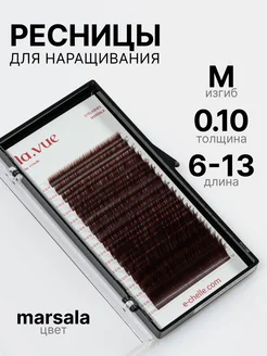 Ресницы для наращивания бордово коричневые M 0.10 6-13 mm