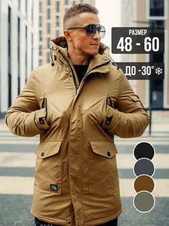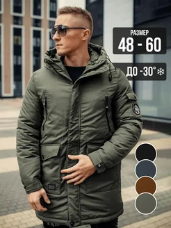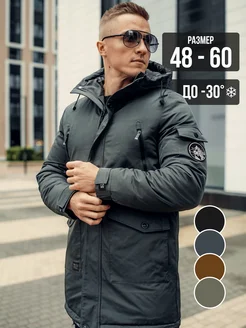 Куртка зимняя мужская удлиненная парка с капюшоном пуховик