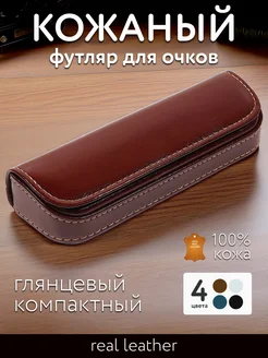 Футляр для очков кожаный R-10061 глянцевый коричневый