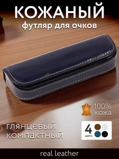 Футляр для очков кожаный R-10061 глянцевый синий