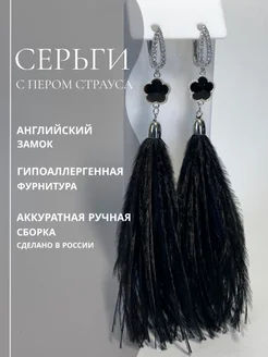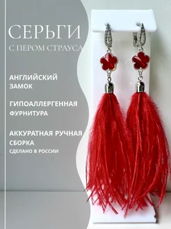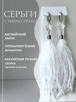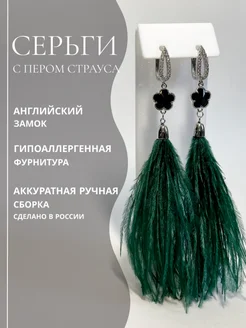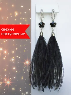 Серьги перья вечерние с кристаллами гипоаллергенные