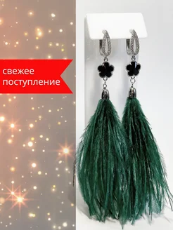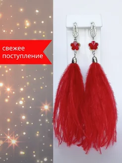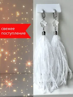 Серьги перья вечерние новогодние гипоаллергенные висячие