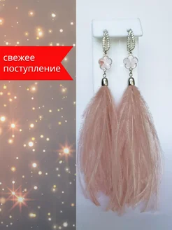 Серьги перья вечерние новогодние гипоаллергенные кристаллом