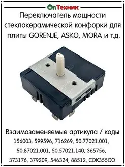 Переключатель мощности стеклокерамической конфорки для плиты