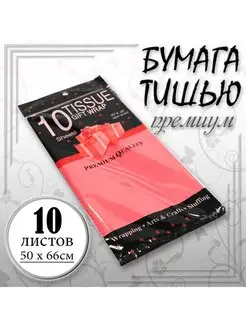 Бумага тишью 50 см х 66 см Коралловая 10листов уп