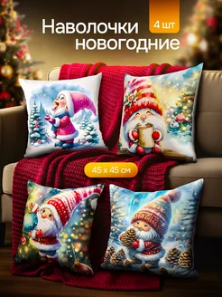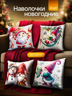 Наволочка декоративная новогодняя 45х45 на молнии Набор 4шт