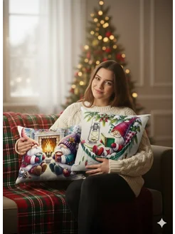 Наволочка декоративная новогодняя 45х45 на молнии Набор 2шт