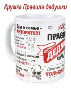Кружка шуточная, в подарок деду "Правила дедушки", керамика