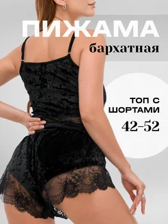 Пижама с шортами и майкой на бретелях кружевная домашняя