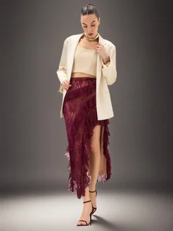 Юбка женская длинная кружевная асимметричная