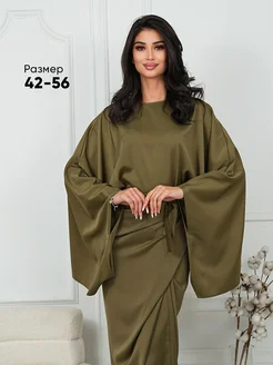 Костюм женский вечерний атласный с юбкой миди