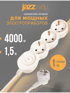 Удлинитель сетевой 3 розетки, 1,5 метров с выключателем