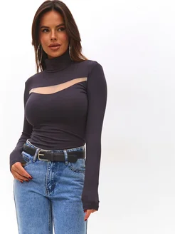 Водолазка женская с сеткой больших размеров для офиса