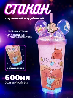 Стакан с трубочкой и крышкой 500 мл Подсветка