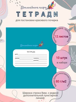Тетрадь широкая строка с редкой дополн. линией 12л. 10шт