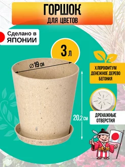 Горшок для цветов большой кашпо напольное 3 л 19х20,2 см