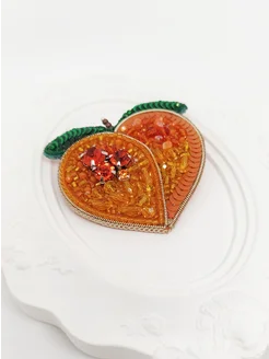 Брошь из бисера ручной работы персик в виде сердца