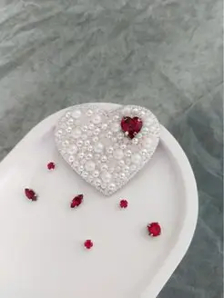 Брошь из бисера белое сердце