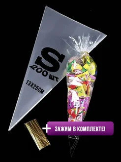 Подарочный пакет конус 30x16 200 штук