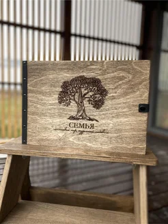 Фотоальбом семейный из дерева свадебный на кольцах А4