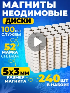 Неодимовый магнит сильный, диск 5х3 мм 240шт N52